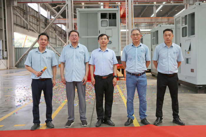 7月2日上午,“華騏環(huán)保首批儲(chǔ)能箱產(chǎn)品下線儀式”在安徽華騏環(huán)??萍脊煞萦邢薰酒煜氯Y子公司安徽華騏蔚藍(lán)智能裝備有限公司順利舉行。馬鞍山經(jīng)開區(qū)黨工委副書記劉凌、華騏環(huán)保董事長(zhǎng)王健、總裁鄭杰、蔚藍(lán)智能裝備總經(jīng)理程曉虎等領(lǐng)導(dǎo)見證下線儀式。華騏環(huán)保董事長(zhǎng)王健、蔚藍(lán)智能裝備常務(wù)副總經(jīng)理張中群分別致辭。劉凌、王健、鄭杰、程曉虎、張中群為第一臺(tái)駛下生產(chǎn)線的儲(chǔ)能箱產(chǎn)品揭幕。