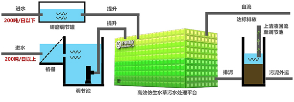 “高效仿生水草污水處理平臺”是針對鄉(xiāng)鎮(zhèn)、農(nóng)村等中小型污水處理項目開發(fā)的,是脫氮除磷村鎮(zhèn)污水處理專利技術(shù)(專利號ZL201310179893.6)的良好應用。該平臺改變了現(xiàn)有很多小型生活污水處理裝置雖然結(jié)構(gòu)上實現(xiàn)了一體化,但附屬設(shè)備多、結(jié)構(gòu)不緊湊、抗沖擊負荷差等缺點。