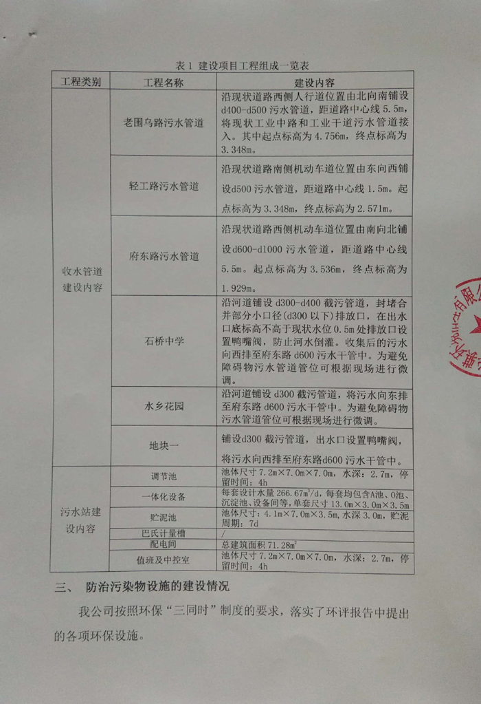 2016年7月6日當涂縣環(huán)境保護局以《關于當涂縣石橋鎮(zhèn)人民政府石橋鎮(zhèn)污水處理站及配套管網工程環(huán)境影響報告表的批復》(當環(huán)表批字[2016]36號)對當涂縣石橋鎮(zhèn)人民政府石橋鎮(zhèn)污水處理站及配套管網工程環(huán)境影響報告表進行批復。公司目前主體工程與環(huán)保等基本按照“三同時”要求建設完成。