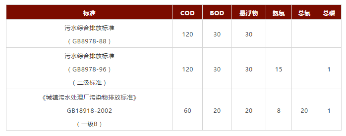 我國城鎮(zhèn)生活污水處理廠建設(shè)早期適用的是《污水綜合排放標(biāo)準(zhǔn)》,針對污水去向執(zhí)行不同級別的排放標(biāo)準(zhǔn)。第一個是GB8978-88版本,后來經(jīng)歷了一次修訂,出臺了GB8978-96版本。
