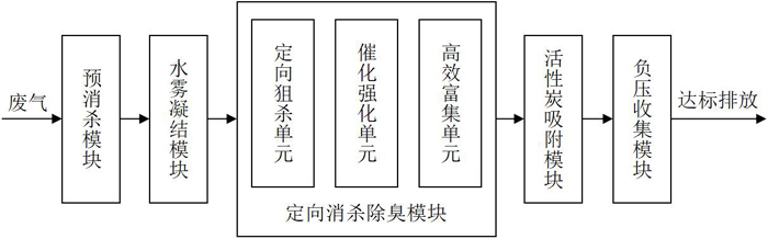 ⑥ 達(dá)標(biāo)排放:經(jīng)消殺除臭后的廢氣,在所述負(fù)壓收集模塊的作用下經(jīng)出氣口達(dá)標(biāo)排放。