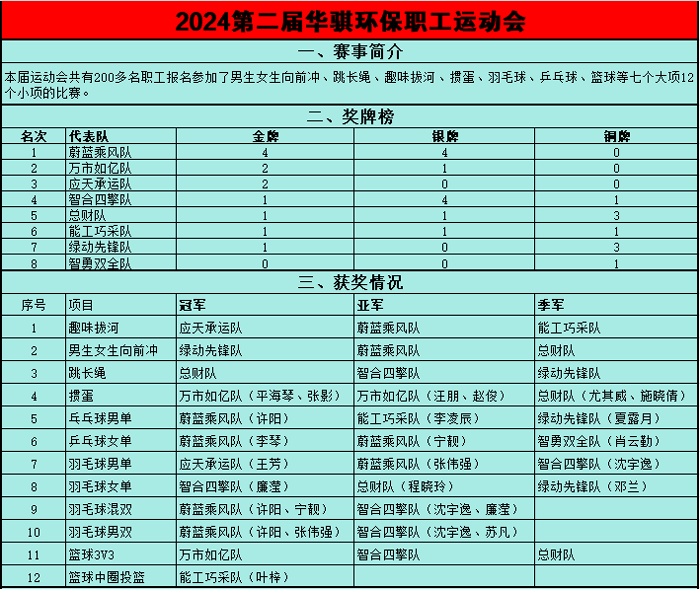 附:2024第二屆華騏環(huán)保職工運(yùn)動(dòng)會(huì)獎(jiǎng)牌榜